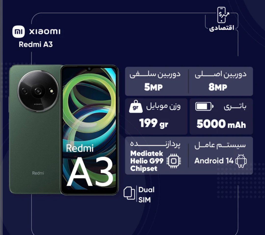 فناوری صفحه نمایش IPS نسخه سیستم عامل Android 14 رزولوشن دوربین اصلی 8 مگاپیکسل اندازه 6.67 اقلام همراه دفترچه راهنما، شارژر، کابل Ty0: 0