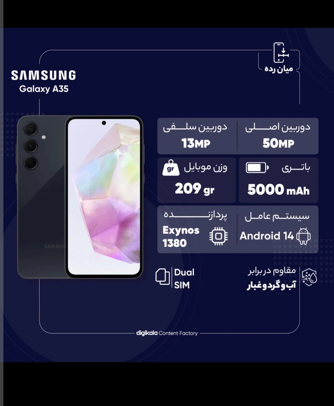 | قابلیتهای مقاومتی | مقاوم در برابر نفوذ آب مقاوم در برابر نفوذ گرد و غبار |